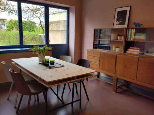 Von August 2025 bis März 2026 entwickelte im mayhaus eingerichteten Designlabor das Studio Jonathan Radetz durchdachte Möbel für kleine Grundrisse. Wohnen auf wenigen Quadratmetern ist heute genauso hochaktuell wie vor 100 Jahren. Damals empfahlen die Gestalter unter anderem die Aufbaumöbel von Franz Schuster und Ferdinand Kramer für die Wohnungen des Neuen Frankfurt. Nun können Sie im mayhaus auch die Prototypen der neuen Möbel besichtigen.
